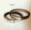 Herrearmbånd med flettet metal i midten på en duo af fawn-læder foret med mørkebrunt læder.