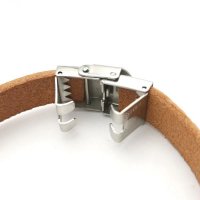 disse justerbare låse kan identificeres ved deres flap. De fås i 2 størrelser (til tyndt 5 mm læder og 10 mm læder) og i 3 farver: rustfrit stål, guldbelagt stål eller sort stål.