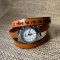 Europæisk læderur til kvinder med en sølvfarvet urskive og en rem, der kan personliggøres med en indgraveret besked.